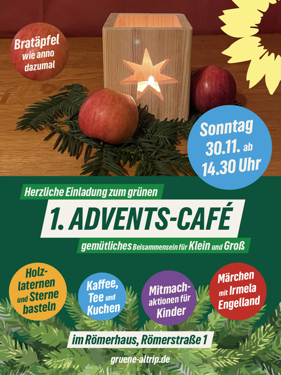 Am 1. Advent laden wir herzlich ins Römerhaus ein. Wie auch letztes Jahr auf dem Weihnachtsmarkt haben wir Mitmach-Aktionen für Kinder vorbereitet, lauschen der Märchenerzählerin Irmela Engelland, es gibt Kaffee und Kuchen, Glühwein und Kinderpunsch u.v.m. Jede und jeder ist herzlich willkommen MITEINANDER den 1. Advent zu feiern.